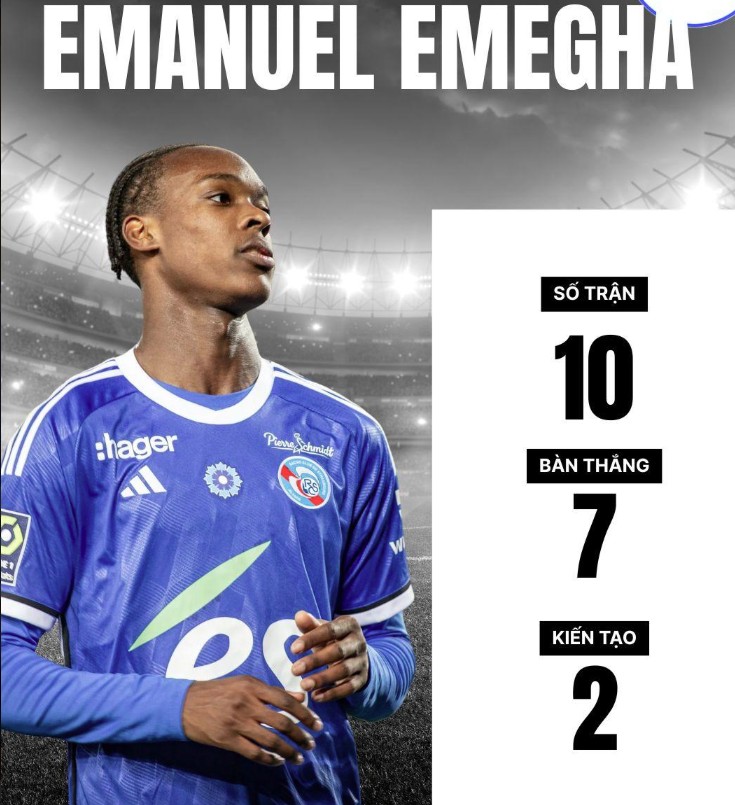 Dù gặp vấn đề gân kheo trong giai đoạn đầu mùa, Emegha đã trở lại trạng thái sung mãn vào đầu tháng 11. Anh chính là người hùng ghi bàn gỡ hòa quan trọng cho Strasbourg trong chiến thắng 2-1 trước Crystal Palace tại Europa Conference League vào rạng sáng 28/11.